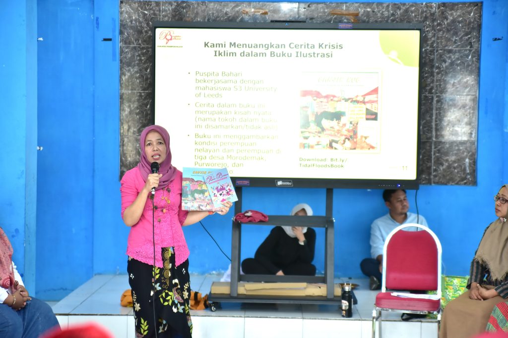 Masnuah menghadirkan cerita dari perempuan nelayan. Ia mengingatkan: pengakuan adalah pintu menuju akses. Ketika perempuan nelayan diakui, mereka tidak lagi berada di pinggir. Mereka menjadi bagian dari keputusan. Dari kekuatan kolektif, mereka mampu merespons bencana seperti banjir rob, menjaga pangan, dan menghidupkan kembali komunitasnya.